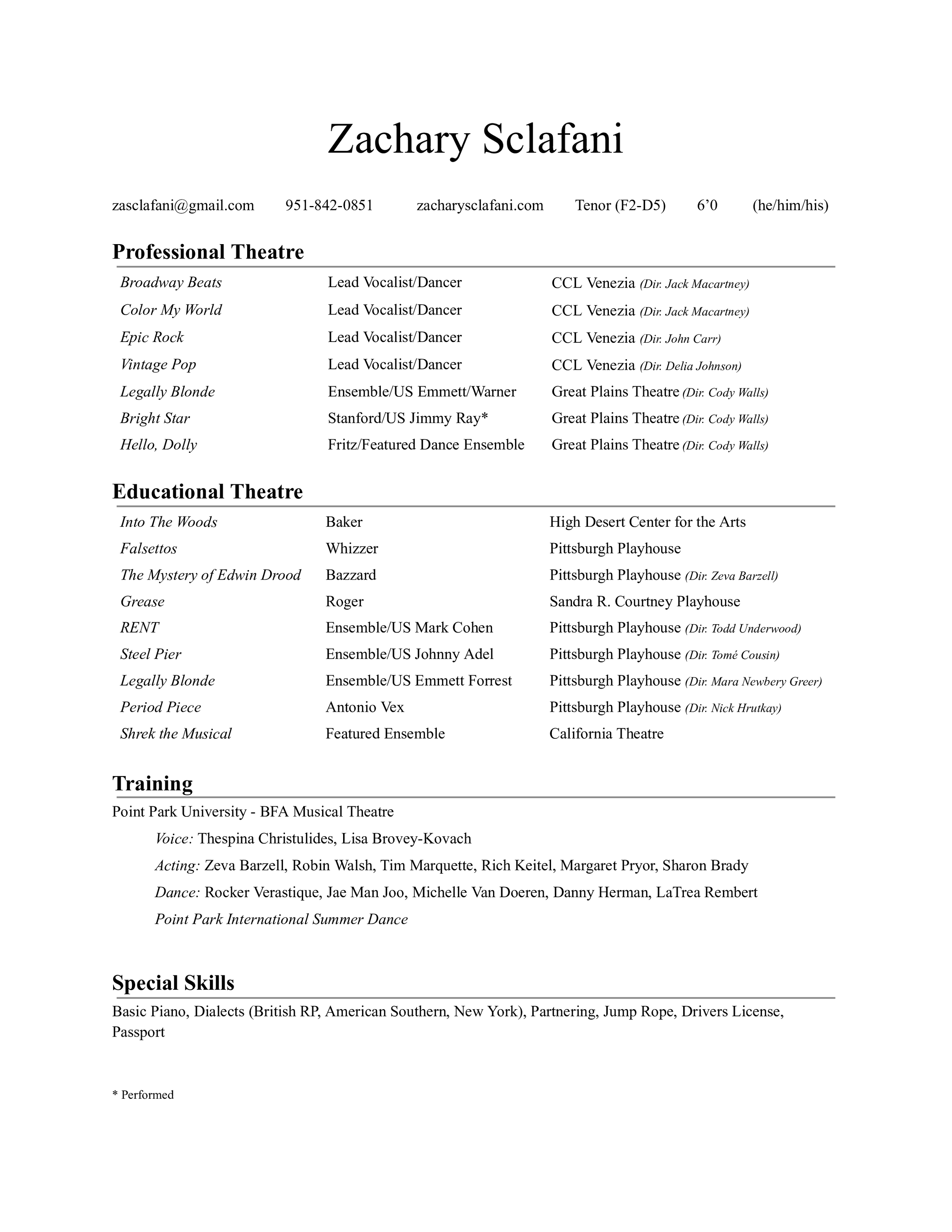 I am an actor and recent BFA Musical Theatre graduate from Point Park University! At its core, I believe theatre is about connecting people through stories and experiences that we can all find a genuine piece of ourselves in. My goal as an artist and actor is to be apart of any community, experience, or story that can both enrich me as an individual and further deepen my truth as an artist in my professional work.